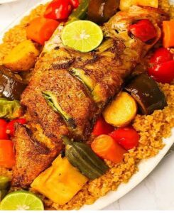 The rice is cooked in a rich tomato and pepper sauce and served with grilled chicken, fish, or vegetables. It is often accompanied by refreshing drinks and light snacks during iftar.